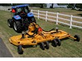All three mowing units are mounted on the cab end of the tractor utilizing loader mount and rock shaft. The frame includes a positive transport lock up position for the wing mowers. The frame is full floating, allowing pivot from level position independent of front and wing units.